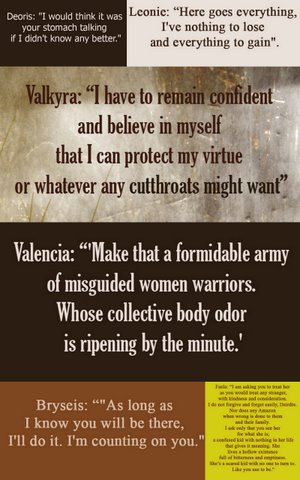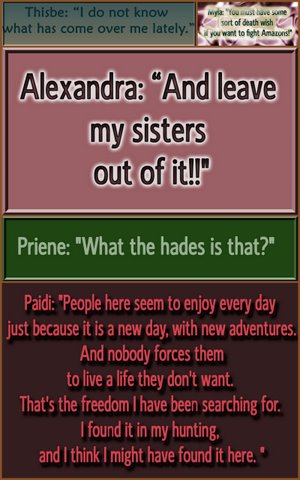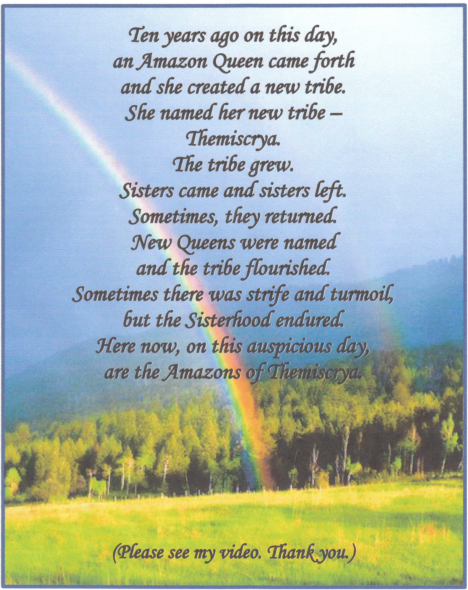 It seems not long ago that I looked for a role playing group of warrior women on the internet. There, I found Themiscyra, Amazon Nation. The women there had similar tastes as I. I quickly applied for membership and was quickly accepted. I had a feeling that I would develop friendships that would last a long time; I did. I also felt that Themiscyra would be a good place to sharpen my writing skills, and it was (with the help of you, my Athelfi).