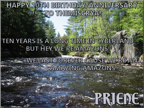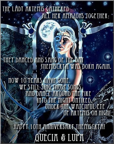 I'm happy to hear that Themiscyra and its members are still going strong and supporting one another. The love and devotion that the members over the years have shown for the group is astounding and astonishing and heart-warming and just plain wonderful. Here's to 10 wonderful years, and hopefully many, many